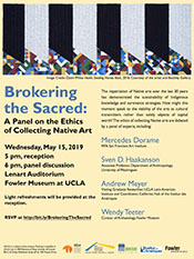 Please see below for our exciting May events, especially our 50th anniversary symposium, Brokering the Sacred: The Ethics of Collecting Native Art on May 15.