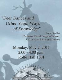 "Deer Dances and Other Yaqui Ways of Knowledge" presented by Professor David Delgado Shorter, UCLA World Arts and Culture Sponsored by The UCLA American Indian Studies Center and the UCLA Latin American Institute.