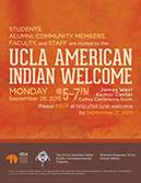 Monday, September 28, 2015 Please RSVP at http://bit.ly/ai-welcome by September 21, 2015. Hosted and sponsored by the UCLA American Indian Studies Center, American Indian Student Association, the UCLA American Indian Studies Interdepartmental Program, and Diversity Programs, UCLA Alumni Affairs. |