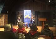 Left: Kent Blansett discusses his new book; Right: LaNada War Jack signs a copy for AISC library