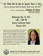 Join us for a special presentation by Noelani M. Arista, Assistant Professor of History at the University of Hawaii, Manoa. |