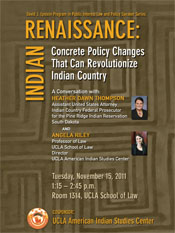 David J. Epstein Program in Public Interest Law and Policy Speaker Series presents a conversation with Heather Dawn Thompson, Assistant United States Attorney, Indian Country Federal Prosecutor for the Pine Ridge Indian Reservation South Dakota, and Angela Riley, Professor Law, UCLA School of Law, Director of UCLA American Indian Studies Center. RSVP required — CLICK HERE If you have any questions about the program, please contact Cathy Mayorkas (mayorkas@law.ucla.edu) |