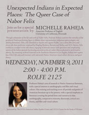 "UNEXPECTED INDIANS IN EXPECTED PLACES: THE QUEER CASE OF NABOR FELIX" PRESENTED BY PROFESSOR MICHELLE RAHEJA