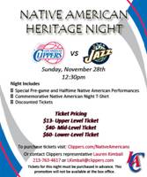 Native American Heritage Night Sunday, November 28th, 2010 at 12:30 pm. LA Clippers vs. Utah Jazz: As part of Native American Indian Heritage month the Clippers will host a special night at the STAPLES Center to Native American Culture. For more information and to purchase tickets, go to the official website: Native American Heritage Night. |