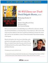 UCLA Library Writer Series - We Will Dance our truth by David Delgado Shorter. Wednesday, October 13, 2010 at 4:00 p.m., Charles E. Young Research Library, Presentation Room. Free; Unreserved seating. A booksigning and reception will follow his talk. This is the first in our Faculty Scholarship Series, co-hosted by Charles E. Young Research Library.