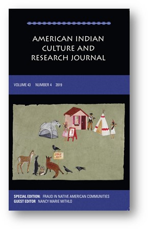 Available online on October 6th at https:// meridian.allenpress.com/aicrj, this provocative new special issue of the American Indian Culture and Research Journal (vol. 43, no. 4) exposes the fraudulent claims of “faux Indians.” Emphasizing adoption of Native identities by artists in particular, this volume features a variety of academics and creative arts practitioners committed to creating a space for discussion of purposeful deception; its commercial, ethical, political, and social impacts; and the resulting multiple harms to Native communities. Print subscribers will receive their copies by October 30th.