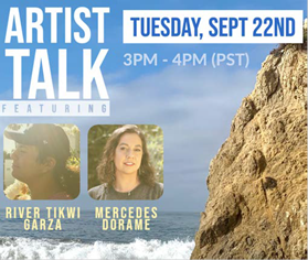Join us for an afternoon discussion with two Tongva artists: MERCEDES DORAME is a Tongva artist who uses her cultural history to engage problematics of (in)visibility and ideas of cultural construction. RIVER TIKWI GARZA is also a Los Angeles Tongva artist and a member of the Ti’at Society. Garza’s work draws on traditional Indigenous aesthetics, Southern California Indigenous maritime culture, graffiti, Xicanx culture, and the Los Angeles urban experience.