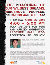 Julian Aguon is an indigenous Chamoru activist, attorney, and author. His specialty area is international human rights and while his work is anchored in his home Guam, he actively works to promote the wellbeing of indigenous peoples of the larger Micronesian region and Oceania as a whole. He lives in Tumhom, Guam. Presented by the American Indian Studies Center (AISC) and Asian American Studies Center (AASC) as part of the UCLA Environmental Justice (EJ) Initiative.