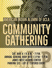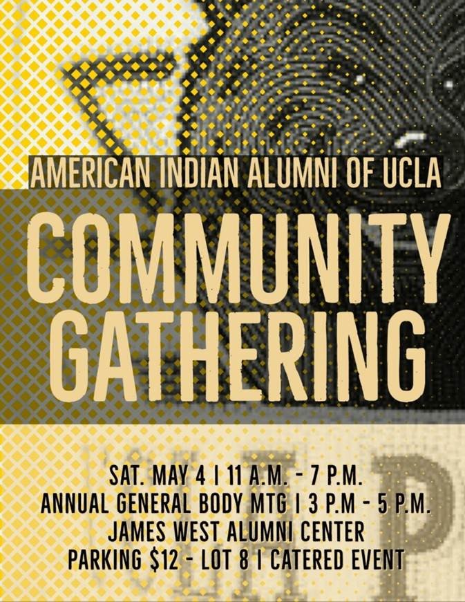 AIA invites you to join a community gathering at UCLA’s campus this Saturday at the James West Alumni Center. All are welcome to attend this event, as many of the head staff invited to the UCLA Powwow will be in attendance and participating. We hope to take Saturday to enjoy the strength in our community, both on and off campus, and share some laughs, food, and offer our support to each other and the American Indian Student Association (AISA) students. This event will include dance, drums & exhibitions, a resource fair, community vendors, and catered food.
