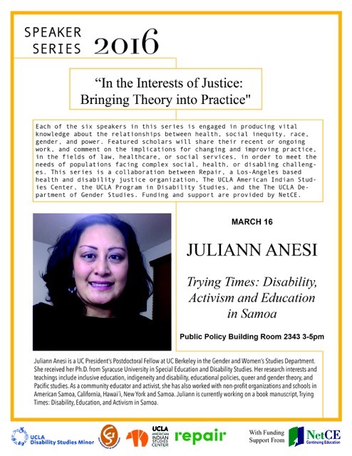 Co-sponsored by the UCLA American Indian Studies Center, REPAIR AND NetCE.
