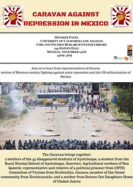 Representatives of diverse sectors of Mexican society fighting against state repression and the US militarization of Mexico will appear to educate students and the public about the their cause.