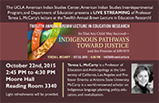 The UCLA American Indian Studies Center, American Indian Studies Interdepartmental Program, and Department of Education presents a LIVE STREAMING of Professor Teresa L. McCarty's lecture at the Twelfth Annual Brown Lecture in Education Research!