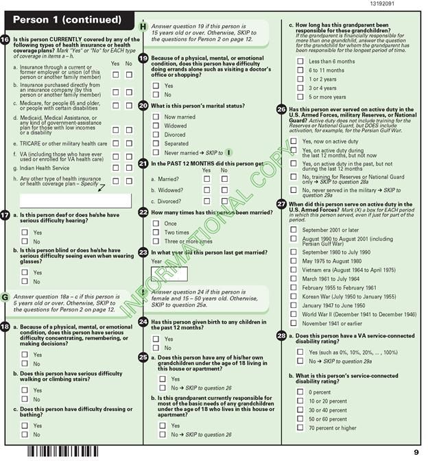 [2]Data are collected on hearing, vision, cognitive, ambulatory, self care, and independent living difficulty for disabilities.